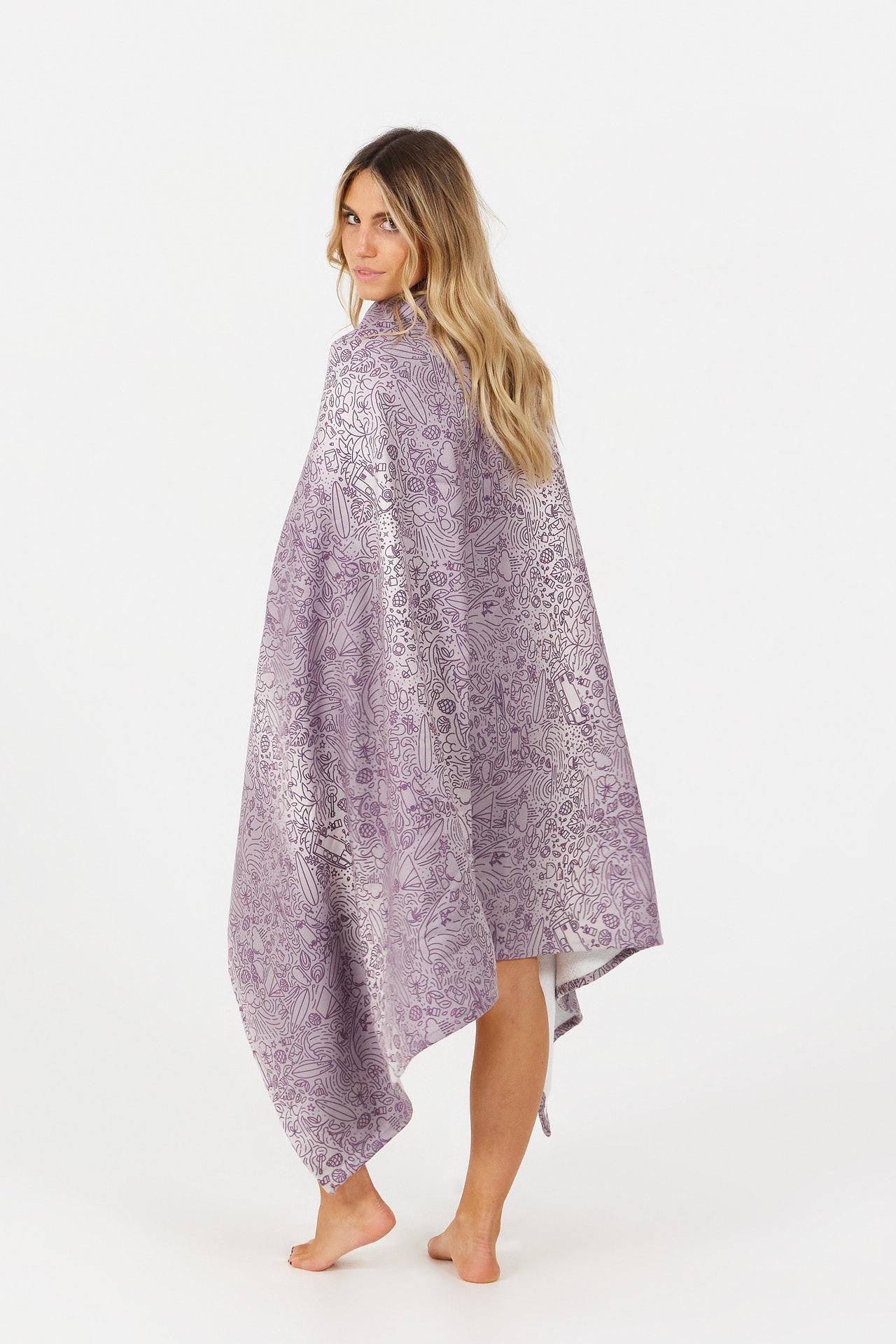 La serviette de plage Landifornia en grande taille pour 2 personnes évoque le lifestyle de la côte landaise en été, entre moments de détente à la piscine, sessions de surf, skate et barbecues sous les étoiles. Spécialement conçue pour être partagée, ses illustrations inspirées des road trips en van à la recherche de vagues, des nuits en camping dans la forêt des pins et des longues journées à la plage capturent l'essence de cette atmosphère unique où seul le bon temps compte.