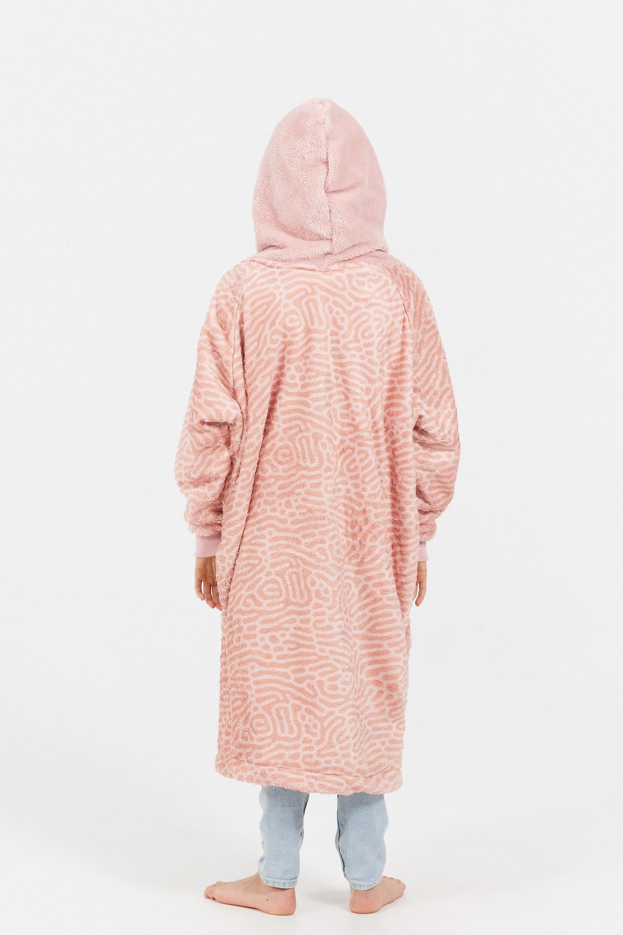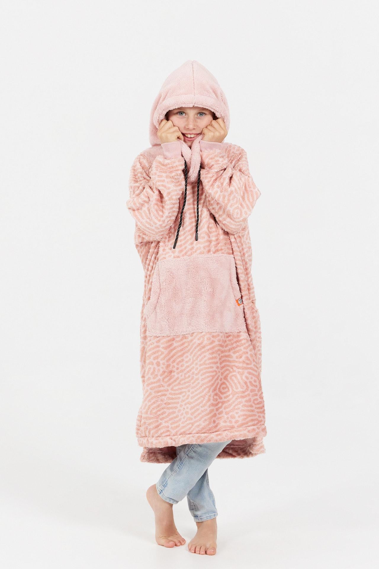 C’est parti pour une soirée dessin animés, les kids sont sur le canapé, bien emmitouflés dans leur Sofa Poncho, tout est prêt : chocolat chaud, friandises et popcorn. Avec sa chaude et confortable polaire imprimée de subtiles motifs rose pâle, son ample capuche et sa poche kangourou, le Powder Pink gardera bien donfortablement vos kids au chaud pour les prochaines heures, et pourquoi pas les prochains jours…