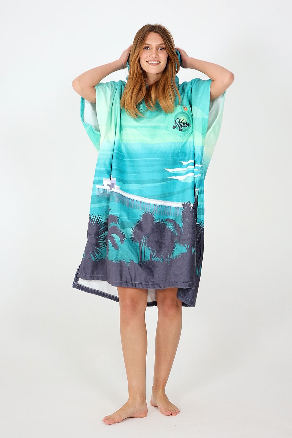 Capitale historique du surf aux États Unis, Malibu, la ville où les montagnes et l’océan se rejoignent, est connue pour ses plages ensoleillées toute l’année et son mythique spots de surf aux droites interminables. Ce poncho aux inspirations californiennes, vous projette directement en haut de la colline du célèbre surf spot admirant les légendes du longboard exécuter leurs plus beaux nose rides.
