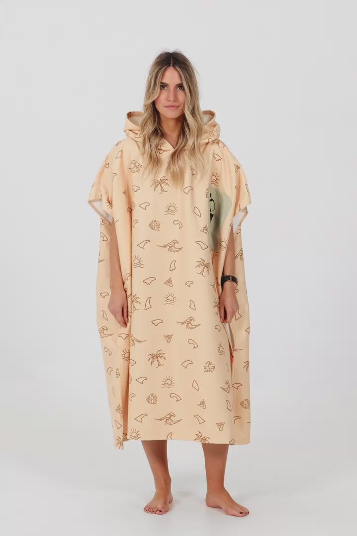 Pour les hommes, le poncho de surf existe en deux tailles : classique ou oversize et est conçu pour une utilisation pratique, avec des matériaux résistants aux éléments marins comme le sel et le vent.