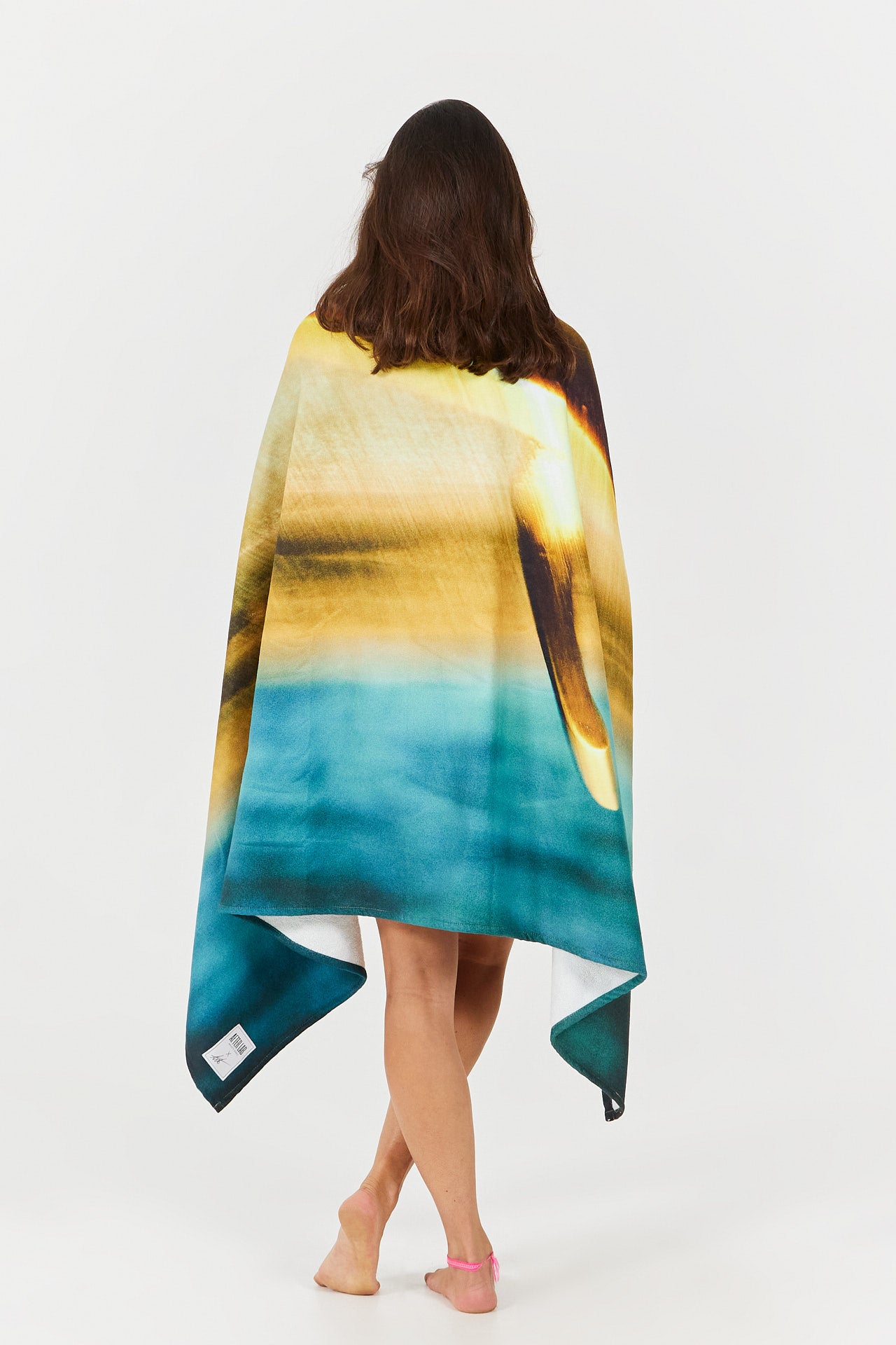 Cette serviette de bain présente une photographie artistique saisissante issue de la collection d’Arto : un longboard posé sur la plage de la North Shore à Hawaï, baigné par la lumière dorée du coucher de soleil. Chaque détail de l’image transforme la serviette en véritable œuvre d’art à utiliser au quotidien.